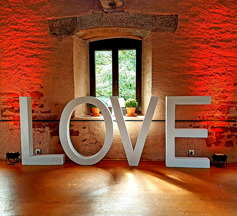 Der `schönste Tag im Leben` wird durch unsere XXL-LOVELETTERS bereichert.
